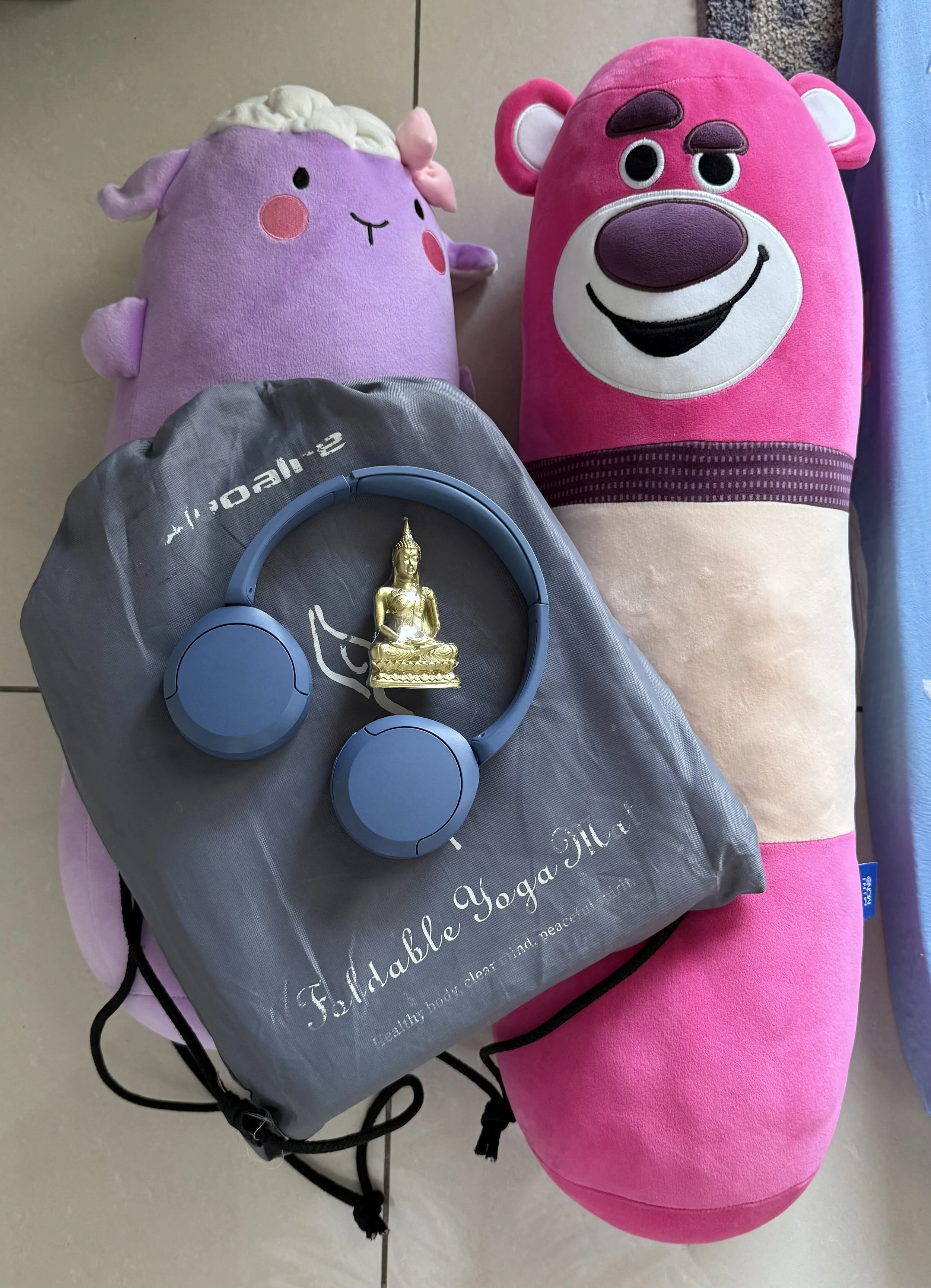 ✨ What’s in your “sanity travel kit”? Ours includes headphones, a foldable yoga mat, a buddha statue, and some cozy cushions!