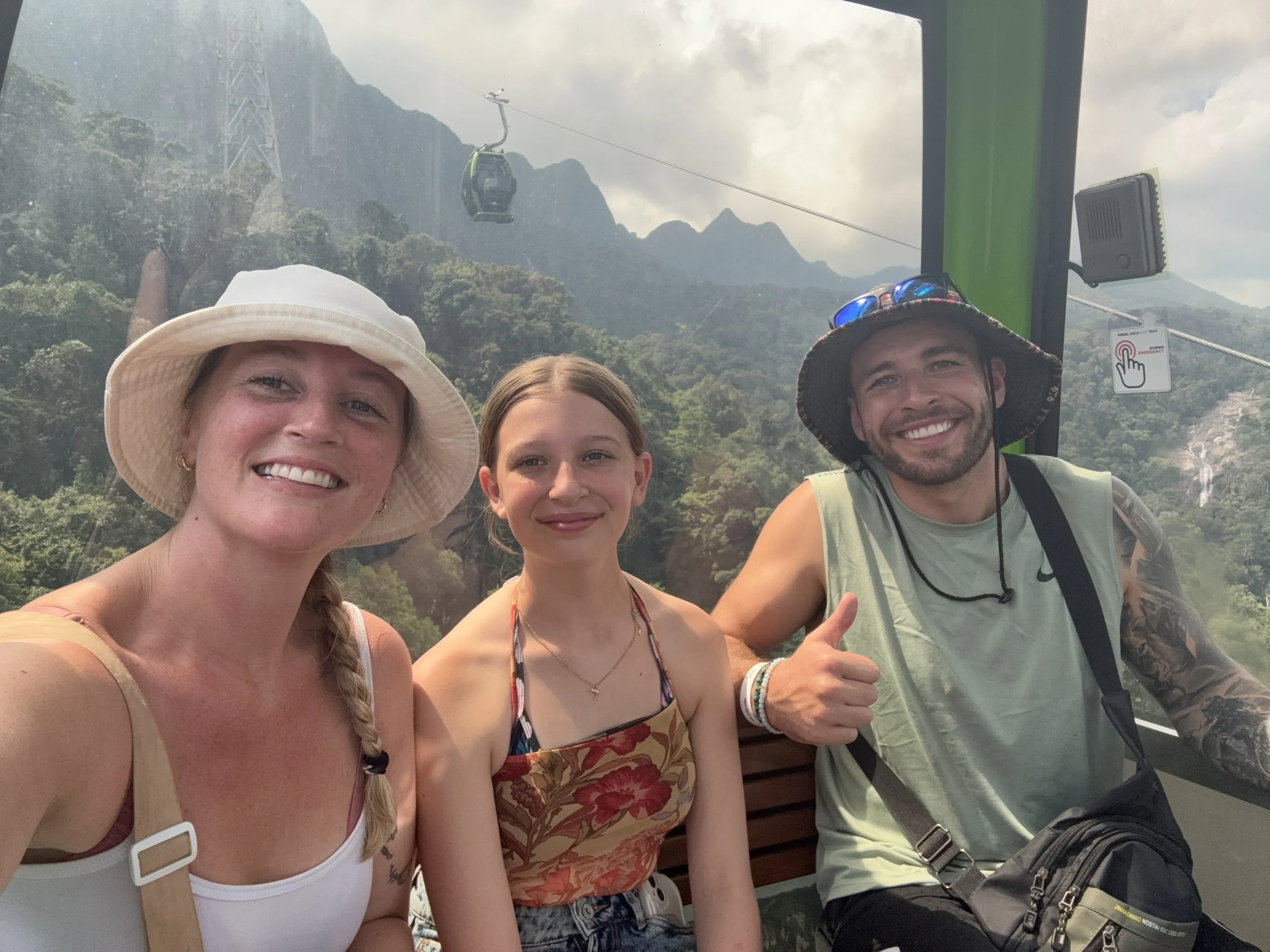 Now, me and Tilly are not fans of heights. Standing at the bottom looking up at the steepest cable car in the world, we nearly chickened out. But I knew we had to do it, because the Sky Bridge was on my bucket list — and you can only reach it by cable car. Once we were up there, floating above jungle and cliffs, it felt surreal. The views over emerald sea and mountains are the kind of thing you remember forever and I got to experience this with my family…amazing!
