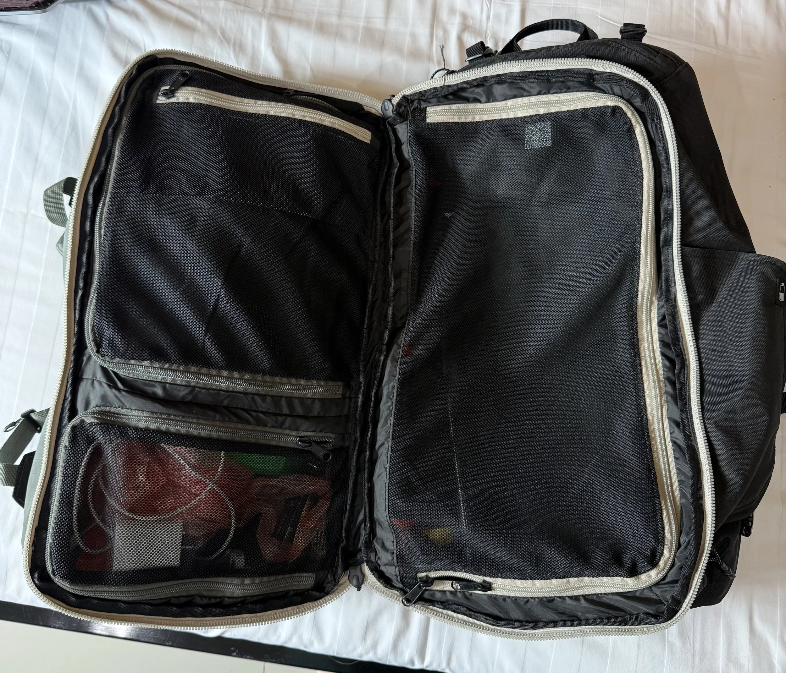 Use the top zipped compartments for clothes you don’t need often (like your jumper for that one cold bus ride).