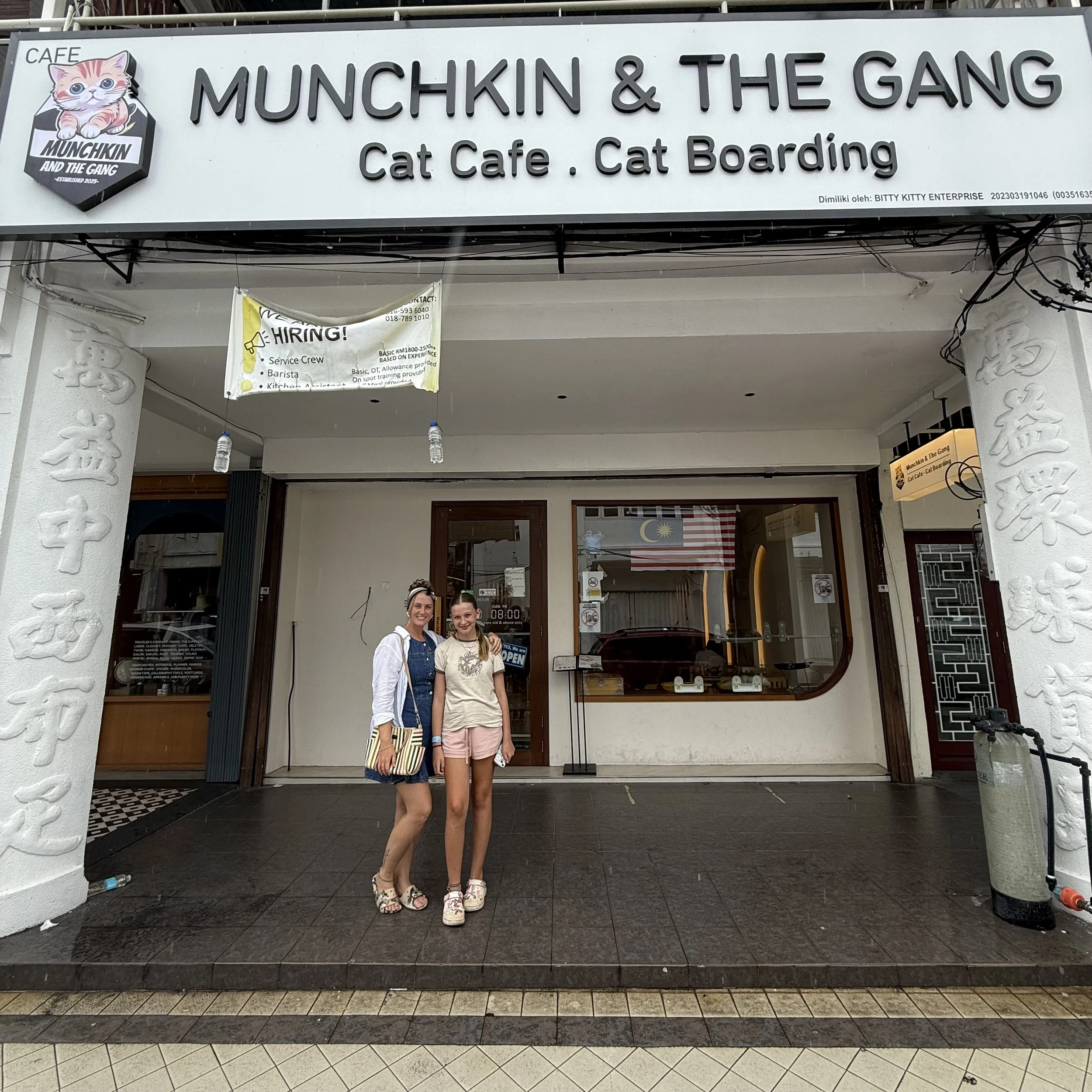 For us, it’s also about filling that pet-shaped hole. Sometimes on our travels, it’s a stray dog who wanders over for a pat, and other times it’s an animal café where the cats are centre stage. In Penang, it was all about the Munchkin cats — famous for their adorable short legs and playful personalities.