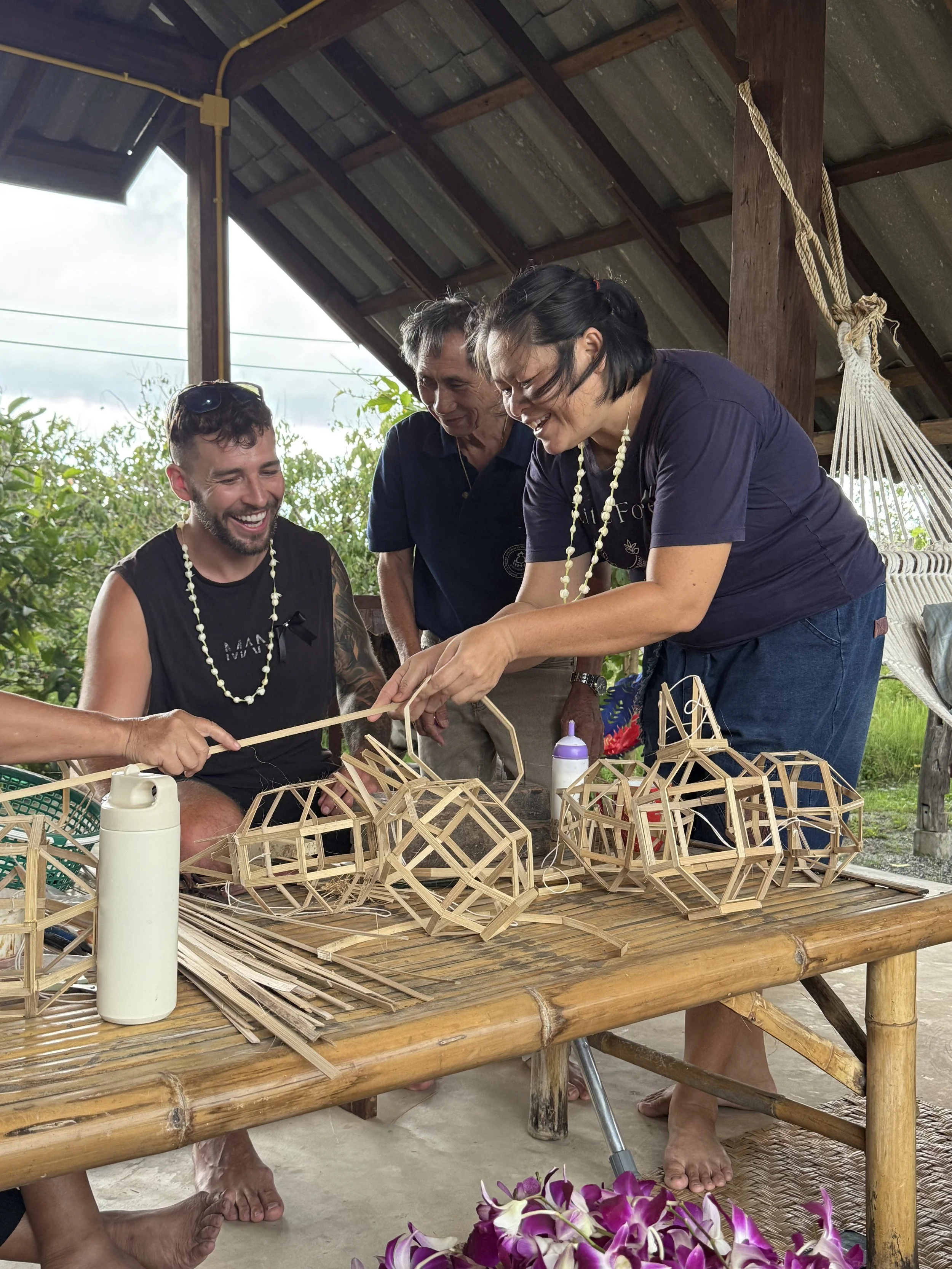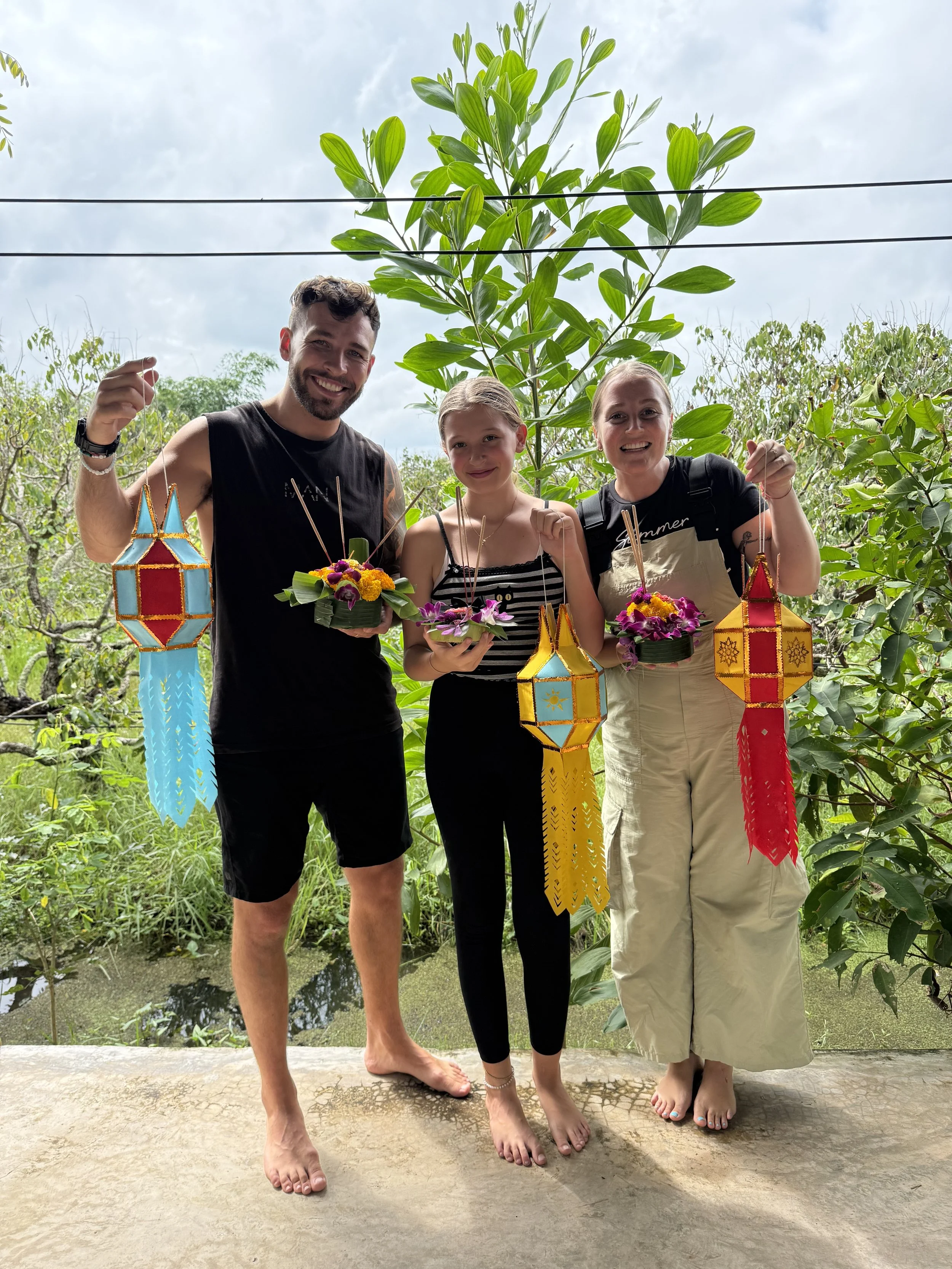 Our days were filled with creativity and Thai culture. We learned how to make lanterns, krathongs (small floating offerings made of flowers and banana leaves), and woven bamboo mats for meditation.