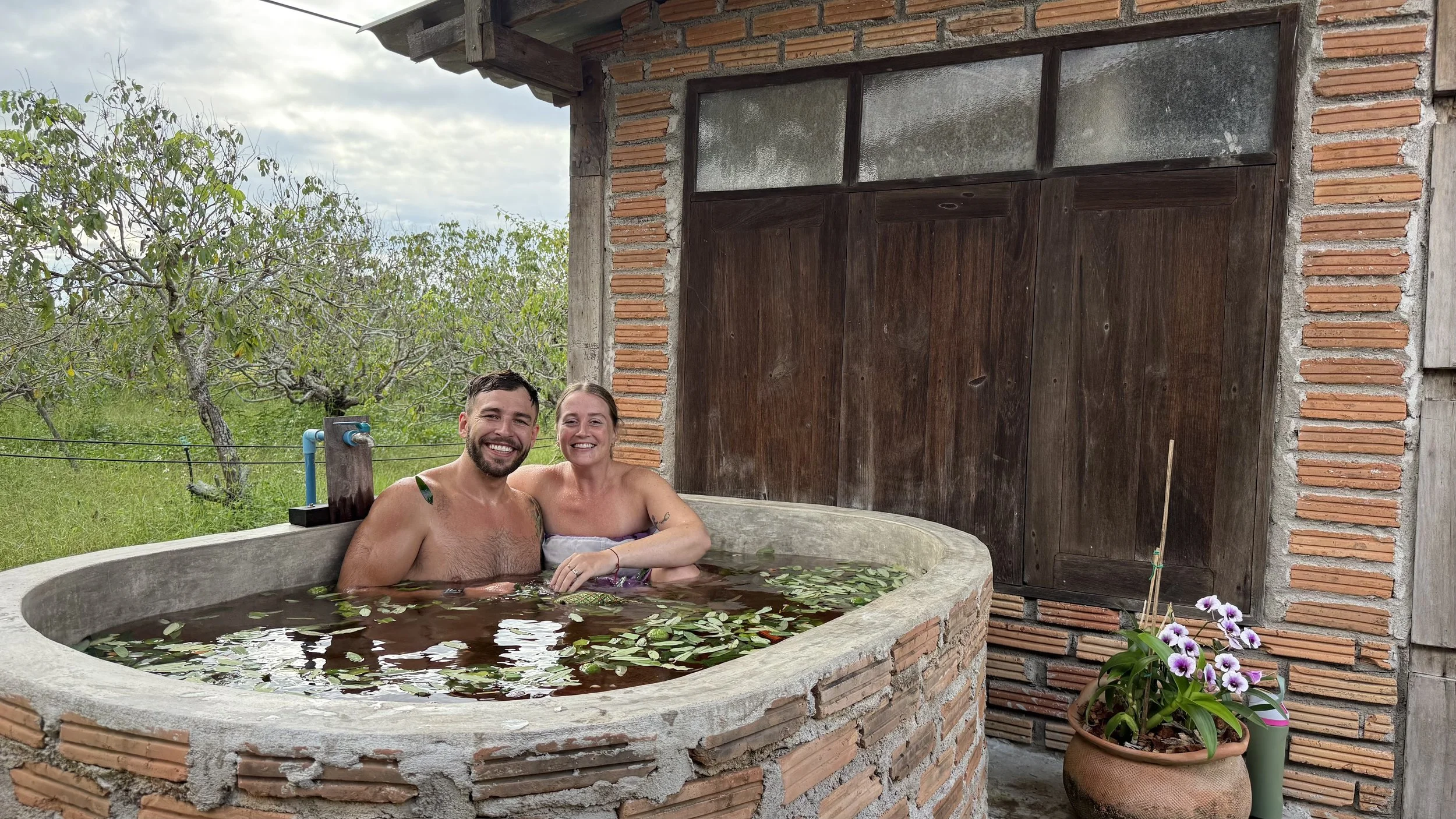 Enjoying a natural herbal bath followed by a steam in the steam room!