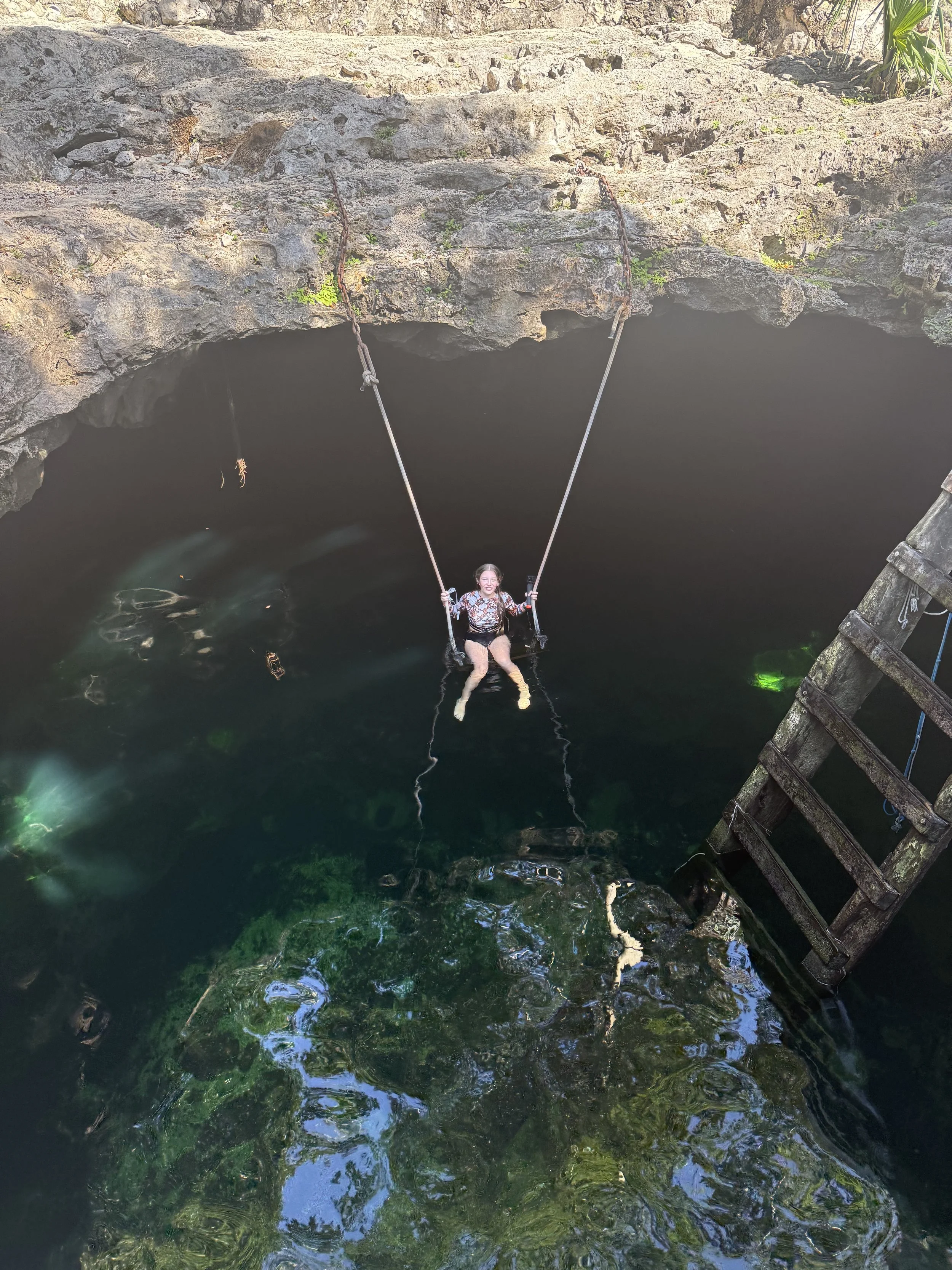 Tilly pushing herself out of her comfort zone in an underground Cenote (Mexico)
