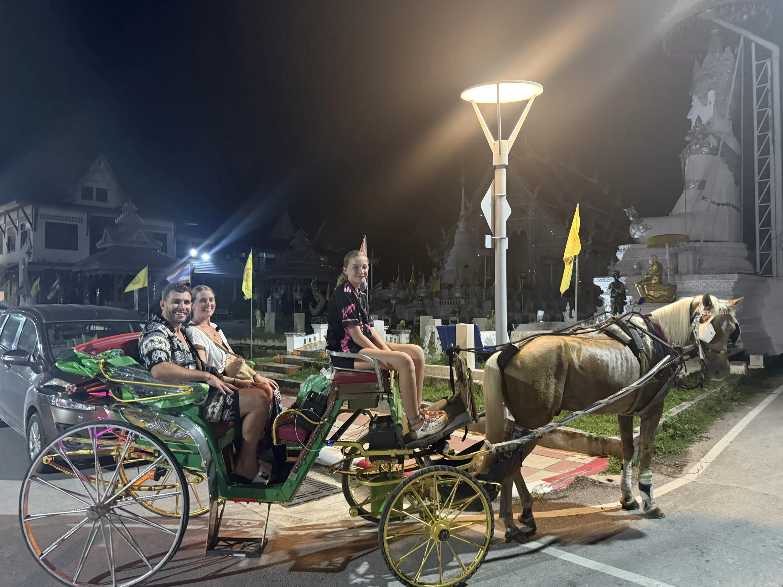 To top off the day, we treated Tilly to a horse and carriage ride through town. She got to sit upfront next to the driver, thrilled to be close to the animals she adores. She’s always been passionate about horses, and now we’re on the lookout for horseback riding opportunities abroad to deepen that interest further.
