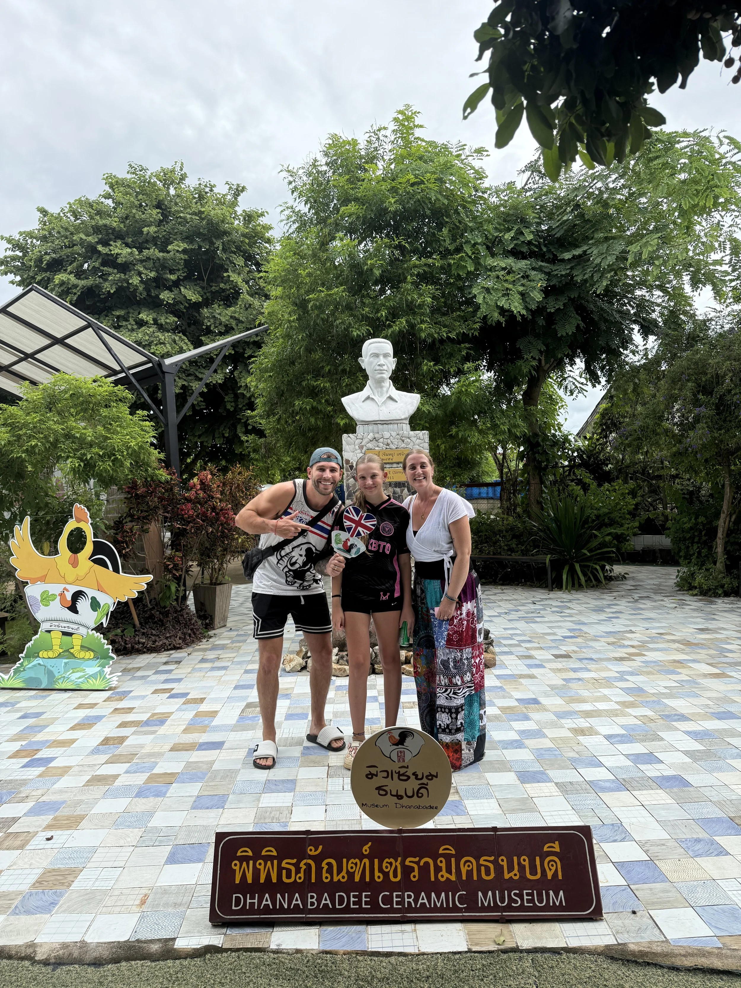 We visited a family-owned ceramic museum and working factory, where we were guided through the entire process of how traditional Thai ceramics are made — from clay to kiln to colourful final product. Tilly was fully engaged. She stood beside a centuries-old kiln, learned about natural clay sources, and heard the story of how one local family turned their passion into a successful business over generations.